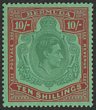 1938-53 KGVI 10/- bluish green & deep red/ green, line perf 14¼. Superb fresh MUH. Scott 126b(var). SG 119a cat £200. (P) |