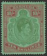 1938-53 KGVI 10/- green & deep lake/ pale emerald, perf 14. VF MLH. Scott 126a(var). SG 119 cat £400. (P) |