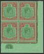 1938-53 KGVI 10/- green & dull red/ green, LR cnr marginal blk of 4 with plate no 1, ordinary paper, perf 13. Superb fresh 1MLH/3MUH. Scott 126(var). SG 119f cat £200 plus premium for plate blks. (P) |