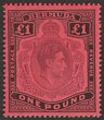 1938-53 KGVI £1 purple & black/ red, perf 14. VF fresh MLH. Scott 128a cat US$175. SG 121 cat £300. (P) |