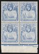 1924-33 KGV Ship 3d blue, lower marginal blk of 4, UR stamp 'torn flag' variety. Stamps VF fresh MUH. SG 14/14c cat £190 for M singles, should be at least double, £380 MUH, plus premium for positional blk. (P)