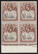 1924-33 KGV Ship 1/- grey-black & brown, lower marginal blk of 4, UR stamp 'torn flag' variety. Stamps VF fresh MUH. SG 18/18c cat £438 for M singles, should be at least double, £876 MUH, plus premium for positional plate blk. (P)