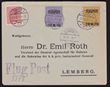 1918 Military Airmail flight cover franked Flugpost opt 1.50Kr/2Kr & 2.50Kr/3Kr, plus Karl 15h, tied by 'Lemberg 6 VI 18' cds (was in Poland, now Ukraine). To Vienna with 'Flugpost Wien 4 VI 18' arrival b/s. Mi 225xI & 226IA cat €139+. Scarce correct franking.