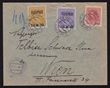 1918 Military Airmail flight cover franked Flugpost opt set 1.50Kr/ 2Kr, 2.50Kr/3Kr & 4Kr, all grey paper, plus crown 3h & 12h, tied by 'Krakau 9 V 18' cds (Poland) with 'Flugpost Poczta Lotnicza Krakau Krakow 9 V 18' cds. To Vienna with 'Flugpost Wien 9 V 18' arrival b/s. Mi 225xI, 226IA & 227xI cat €334+. Nice set franking. (P)