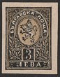 1896 Lion 3L black & drab IMPERF. VF fresh M, tiny thin at top. SG 84(var). Mi 45U. Rare as only 1 sheet recorded. 2016 Ceremuga photo cert. (P) |
