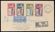 1935 Registered cover franked KGV Silver Jubilee set 1½d to 1/- tied by 'Nassau 31 May 35' cds. To London by air with Miami & New York transit b/s, sl reverse stains. SG 141-44 cat £40 as loose stamps & 'from x4' on cover.