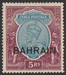 1933-37 BAHRAIN opt KGV 5R ultramarine & purple wmk mult star inverted. VF fresh MUH. Scott 14 cat US$450, SG 14w cat £170 for M, should be at least double, £340 MUH. (P)