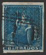 1855-58 Britannia (1d) deep blue, imperf on white paper. Superb U, 4 margins, barred oval '1' pmk. Scott 5 cat US$70, SG 10 cat £65+. 2002 RPSL photo cert. (P)