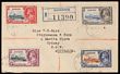 1936 Registered cover franked KGV Silver Jubilee set 1d to 1/- tied by 'Barbados 2 JU 36' cds. To Australia with Barbados, New York, San Francisco & Sydney b/s. SG 241-44 cat £45 as loose stamps & 'from x5' on cover.