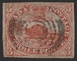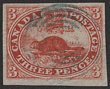 1852-57 Beaver 3d red, imperf on machine made wove paper. Superb VFU, 4 margins, barred pmk. SG 18 cat £450. Unitrade 4iii cat C$850. (P) |