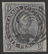 1852-57 Prince Consort 6d greenish-grey, imperf on wove paper. VFU, almost 4 margins. SG 10 cat £1400. Unitrade 5b cat C$1600. Pinchot photo-cert. (P) |