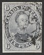 1851 Prince Consort 6d slate-violet, imperf on laid paper. VFU, 4 margins, concentric circles pmk. SG 2 cat £1600. Unitrade 2 cat C$2000/1000. (P) |