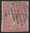 1852-57 QV ½d deep rose, imperf on medium machine made wove paper. VFU, 4 margins, barred pmk. SG 17 cat £650. Unitrade 7 cat C$1000. (P) |