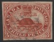 1852-57 Beaver 3d red, imperf on thin wove paper. Superb VFU, 4 margins SG 5 cat £250. Unitrade 4 cat C$300. (P) |