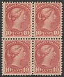 1889-97 QV small head Ottawa printing, 10c brownish red, blk of 4. VF fresh M, excellent centring & rich colour. Unitrade 45. SG 111 cat £1700 as singles. Rare multiple. (P) |