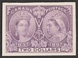 1897 QV Jubilee $2 deep violet imperf plate proof on card. Superb UN as made, 4 margins. SG 137(p) cat £1100 for normal. Unitrade 62P cat C$800. Only 750 made. (P) |
