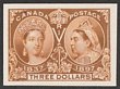 1897 QV Jubilee $3 bistre imperf plate proof on card. Superb UN as made, 4 margins. SG 138(p) cat £1500 for normal. Unitrade 63P cat C$800. Only 750 made. (P) |