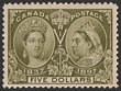 1897 QV Jubilee $5 olive-green. Superb fresh MLH, excellent centring. SG 140 cat £1500. Unitrade 65 cat C$2000. Very nice top value. (P) |