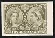 1897 QV Jubilee $5 olive-green, imperf proof, on card. Superb fresh UN as made, 4 margins. SG 140(p) cat £1400 as normal, Unitrade 65P cat C$800. Only 800 printed. (P) |