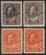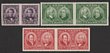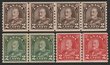 1930-31 KGV coil stamps 'cockeyed king' variety on left stamp of ea inc 2c deep brown, horiz strip of 4, 2c green horiz pr plus 2c scarlet, horiz pr. VF fresh MLH. SG 306/306a, 307/307a, 308/308a cat £251.Unitrade 180/180ii, 181/181ii, 182/182ii cat C$328/197. (3 items) (P) |