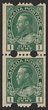 1912-21 KGV coil stamp 1c blue-green, vert pr with 2 large holes at top & bottom of ea stamp, perf 12 x imperf. Superb fresh M. SG 217a cat £80+. Unitrade 131iu cat C$200. (P) |