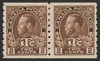 1922-31 KGV coil stamp 1c chrome-yellow Die I vert pr, imperf horiz. VF fresh MUH. SG 256a cat £180 for M, should be at least double £360 MUH. Unitrade 126a cat C$625. (P) |