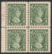 1935 Princess Elizabeth 1c green Silver Jubilee left marginal blk of 4, LL stamp variety 'weeping Princess'. VF fresh 2 M/2 MUH (variety is MUH). SG 335/335a cat £165 for M, should be at least double £320 MUH plus premium for positional blk. Unitrade 211i at C$300+. (P) |