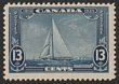 1935 Silver Jubilee 13c blue Yacht, variety 'Shilling mark'. VF fresh MLH. SG 340a cat £600. Unitrade 216i cat C$675. (P) |