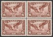 1935 Airmail 6c red-brown, blk of 4, UR stamp 'moulting wing' variety. VF fresh MLH. SG 355/355a cat £123+ as singles plus premium for se-tenant blk. Unitrade C5/C5ii cat C$178+. (P) |
