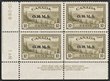 1949 'O.H.M.S.' opt Power Station 14c sepia, blk of 4, LR stamp variety 'missing stop after S'. Superb fresh MUH. SG O167/O167a cat £416+ as singles. Unitrade O7/O7a cat C$270+. (P) |