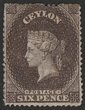 1861-64 QV 6d deep brown, wmk Large Star, rough perf 14-15½. VF UN appearance, tiny thin. Scott 28a cat US$1350. SG 31 cat £1500. (P) |