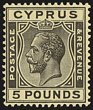 1924-28 KGV £5 black/yellow. Superb fresh MLH with nice original gum, bright colour & excellent centring. Scott 109 cat US$4000. SG 17a cat £3750. Rare top value in unusually nice quality. Brandon photo-cert. (P) |