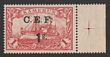 1915 CEF 1s opt Yacht 1Mk carmine, variety 'inverted S', plus with strong opt offset on back. Superb fresh MLH. Scott 65a cat US$1425+, Mi 10I, SG B10a cat £1000+, plus premium for opt offset. Only 100 printed (and of these tiny number with opt offset) & desirable positional example. BPA photo cert. (P)