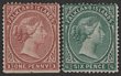 1878-79 QV 1d claret & 6d blue-green, no wmk thin paper. F-VF fresh M, 1d partial gum & sl imperfections. Scott 1 & 3 cat US$975. SG 1 & 3 cat £920. The 1d is very scarce & often misidentified. (2). (P) |