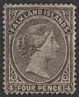 1891-1902 QV 4d brownish-black, wmk Crown CA upright reversed. VF MLH. Scott 6c cat US$875. SG 31 cat £1000. Rare stamp. |