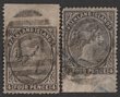 1878-79 QV 4d grey-black, no wmk, thin paper, both top marginal & bottom marginal IMPERF between stamps & margin. VFU, barred oval pmks. Scott 2(var) cat US$400+. SG 2(var) cat £320+. (2) (P) |
