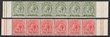 1918-20 'WAR STAMP' opt KGV ½d & 1d, left & right marg horiz strips of 6 with REVERSED ALBINO opts in right margin, plus ½d all opts partly over value. VF fresh MUH. Heijtz 35av1/v5 & 36av4 cat £330+. SG 70(var) & 71(var). (2 strips) (P) |