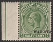 1918-20 'WAR STAMP' opt KGV ½d dull yellowish-green, variety opt shifted so reading 'WAR STA'. F-VF fresh MLH. JG 70c(var). Heijtz 35dv1 cat £150+. Very rare. (P) |