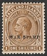 1918-20 'WAR STAMP' opt KGV 1/- brown, thickish paper, error wmk Mult Crown INVERTED. VF fresh MLH. Heijtz 37c wmk 1. SG 72bx cat £450. (P) |