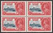 1935 KGV Silver Jubilee 1d deep blue & scarlet, se-tenant blk of 4, LL stamp variety 'flagstaff on right hand turret'. VF fresh M/MUH. SG 139-139d cat £461+ as singles, plus premium for se-tenant blk which should be +50%, so est cat £692. (P) |