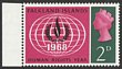 1968 Human Rights 2d error yellow colour totally OMITTED, so 1968 is white instead of yellow. VF fresh MUH, left marginal. SG 228a cat £2500. Rare as only 1 sheet of 60 was discovered. Certificate can be obtained on request. (P) |