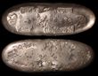 ND (1859-65) Ansei era silver Chogin. Edo mint with 6 stamps on body. Small size. Good silver colour F. C-9c, JNDA 09-69 cat US$650. 76mm x 29mm, 108.3g. (P)