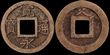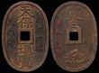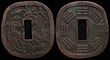 Akita 1861-64 AE 100 Mon (46.94g), Ugo province 1862. First issued at 100 Mon & quickly reduced to 80 Mon in trade. Phoenix with short tails. Shape is probably based on the 'tsuba' or sword handle guard.. KM-6.1, H-7.2, JNDA-139.10 (P)