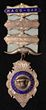 RAOB GAB - Royal Antediluvian Order of Buffaloes Lodge New Guinea 210 1937 Jewel medal, rev Inscribed R.A.O.B.G.A.B. Pres to Brown AE Spence by Lodge New Guinea 210 for Attendance 1937'. 1st clasp inscribed 'Attendance New Guinea 210' (engraved 9ct), 2nd clasp inscribed 'Lodge New Guinea 210 For Attendance 1940'. Medal is silver but not marked. Medal & 2nd bar 9ct gold faced. Spence lived in New Guinea for 17 years, with background info. Rare. (P)