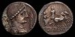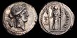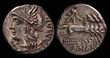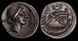 L. Memmius Galeria. ca. BC 106. Silver Denarius serratus (3.9g). Rome.ROMA, laureate head of Saturn left; harpa behind / L.MEMMI / GAL (ME ligate), Venus driving slow biga right, scepter in right hand, reins in both hands; Cupid flying left above crowing Venus with wreath, .F below horses.aEF/gVF. great detail and well centreed in the obverse die. Rev slightly off centre otherwise a really choice example.Crawford 313/1c. Sydenham 574a. Memmia 2a. (P)