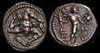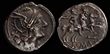 Anonymous. After ca. BC 211. Silver sestertius (1.07g). Rome.Head of Roma right, wearing winged helmet surmounted by griffin crest; IIS (mark of value) behind, all within dotted border / Dioscuri galloping right; ROMA in relief within linear fame below, all within in linear border.VF.Crawford 44/7. Sydenham 142.