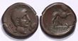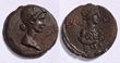 Cleopatra VII with Mark Antony. BC 36-30. Bronze (8.36g) years ?? (21) and (6) = 32/1. Syria, Coele-Syria. Chalkis ad Libanon. Draped bust of Cleopatra to right, wearing stephane. Rev. Bare head of Antony to right.gVF. A very attractive example, with a fine green patina and a splendid bust of Cleopatra, all on a broad flan. Rev struck slightly off-centre and with some striking flatness as the usual of this very difficult type.Rouvier 440 (Berytus). RPC 47711. SNG Munich 1006. SNG Copenhagen 382. Svoronos 1887. At the famous "donations of Alexandria" in 36 BC, among the many "gifts" illegally bestowed by Antony on Cleopatra was sovereignty over the lands of Coele Syria, now the Beqaa Valley in Lebanon, with its profitable trade in cedar wood and exotic spices. This bronze coin of a city under Cleopatra's control, Chalkis in Coel-Syria, is dated to the sixth year of her sovereignty in the region (32/1 BC). While it hugely increased her wealth and prestige, it also put Cleopatra in emnity with Herod the Great of Judaea, who coveted the same luxury markets. Originally a supporter of Antony, Herod eventually "jumped ship" to join Octavian when civil war broke out in 32 BC. (P)