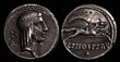 Augustus 27 BC-AD 14. Struck circa 25 BC Ionia. Ephesos. Cistophoric Silver Tetradrachm (27 mm, 11,77 g).IMP CAESAR, bare head of Augustus to right / AVGVSTVS, capricorn to right, head turned back to left, cornucopiae on its back; all within wreath.RIC 477; RPC 2213. Mint State. An exceptional state of preservation, undoubtedly one the finest specimen known. A superb portrait struck in high relief and a wonderful light grey tone and fully lustrous. Augustus, originally named Gaius Octavius and later known as Gaius Julius Caesar Octavianus, was the first emperor of Rome and one of the most significant figures in Roman history. Born in 63 BC, Augustus came to prominence following the assassination of his great-uncle and adoptive father, Julius Caesar, in 44 BC. His rise to power marked the end of the Roman Republic and the beginning of the Roman Empire, a transformation that would shape the course of Western history. After Julius Caesar?s murder, Augustus formed the Second Triumvirate with Mark Antony and Lepidus to defeat Caesar?s assassins, Brutus and Cassius, at the Battle of Philippi in 42 BC. This alliance, however, was short-lived, as tensions soon arose between Augustus and Mark Antony. The conflict culminated in the decisive Battle of Actium in 31 BC, where Augustus defeated Antony and Cleopatra, effectively consolidating his control over Rome. In 27 BC, the Roman Senate awarded him the title "Augustus," meaning "revered one," signifying his new role as the supreme ruler. Though Augustus maintained the outward appearance of a republican government, he held absolute power, marking the true beginning of the Roman Empire. His reign ushered in the Pax Romana, a long period of peace and stability throughout the Roman world that lasted for over two centuries. Augustus? rule was characterized by significant reforms in nearly all aspects of Roman life. He reorganized the Roman military, establishing a professional standing army, and reformed the financial and administrative systems. His reign also saw a flourishing of culture, with major literary figures such as Virgil, Horace, and Ovid producing some of their greatest works. He also improved Rome?s infrastructure by building roads, aqueducts, and public buildings. Despite his long and successful reign, Augustus faced personal struggles regarding his succession. His only biological child, Julia, did not provide a direct male heir. Over time, he adopted several successors, including his stepsons, Tiberius and Drusus, from his marriage to Livia Drusilla. Ultimately, Tiberius succeeded him after Augustus died in AD 14. Augustus? legacy is immense, as he transformed Rome from a chaotic republic into a stable, long-lasting empire. His political, military, and social reforms had a lasting impact, and he was deified by the Roman Senate after his death, securing his place not only as a historical figure but also as a god in Roman religious tradition.Ex; Nomos Auction 21, 293.Ex; A. Czyzewski Collection, Privetly purchased from Superior galleries. Ex; Herakles 1, Lot 51, Hammered 7500 EUR. (P)