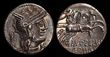 M. Sergius Silus. BC 116-115. Solver Denarius (3.88g). Rome mint.Brockage.Helmeted head of Roma right; mark of value to left / Incuse and reverse of obverse.EF. A very interesting brockage of the type.Crawford 286/1; Sydenham 534; Sergia 1; RBW 1115. (P)