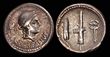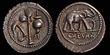 The Republicans. Brutus. Early BC 42. Silver Denarius (4.09g). Military mint, probably at Smyrna; P. Cornelius Lentulus Spinther, legatus. Emblems of the pontificate: securis, simpulum, and secespita; BRVTVS below / Emblems of the augurate: capis and lituus; LENTVLVS/SPINT in two lines below.gEF, A magnificent strike and perfectly centreed. Lustrous surfaces overlaid with delicate russet toning. A fantastic example and one of the finest known.Crawford 500/7; CRI 198; Sydenham 1310; RSC 6; BMCRR East 80-1; Kestner 3770; RBW 1766; S.1431.The types chosen for this issue indicate both Brutus' membership in the college of pontifices and the legate's, P. Lentulus Spinther, membership in the augurate. The pontificate and augurate were Rome's foremost priestly colleges, the former supervising all of the other priestly colleges, and the later being responsible for reading the signs of the gods to determine whether or not an anticipated undertaking would be divinely supported or opposed. The priestly symbols on this issue, which was struck to pay the military expenses of the tyrannicides while preparing for the expected showdown with the Triumvirs, suggests divine support and the just nature of their cause. (P)